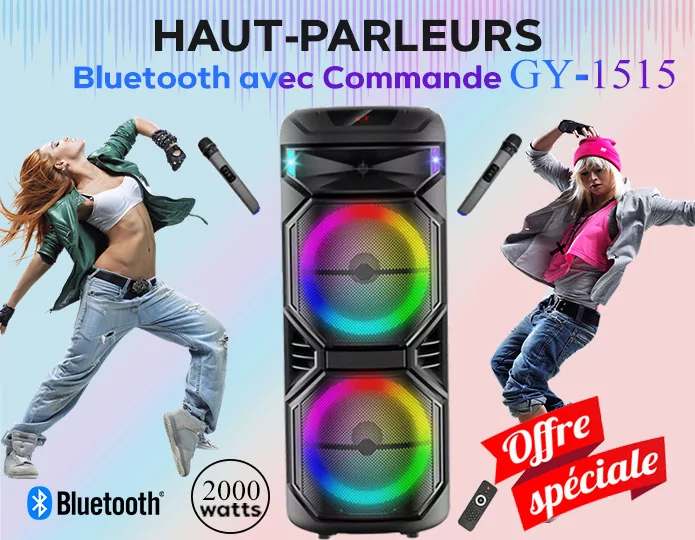 Haut-parleurs doubles de 15 pouces : Cette configuration permet un son puissant et des basses renforcées.