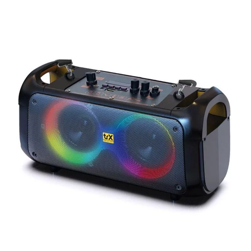 Haut Parleur Mobile TRAXDATA - Taille de l'unité: 2 x 4 - Enceinte karaoké portable MP3 - Connectivité Sans Fil: Bluetooth - Microphone sans fil - Puissance: 40 Watts - Batterie 3,7V, 1800mAh lithium - Lumière RVB - Entrée/sortie audio AUX - Chargeur USB - SD card - MMC - Couleur: Noir - Garantie: 1 an