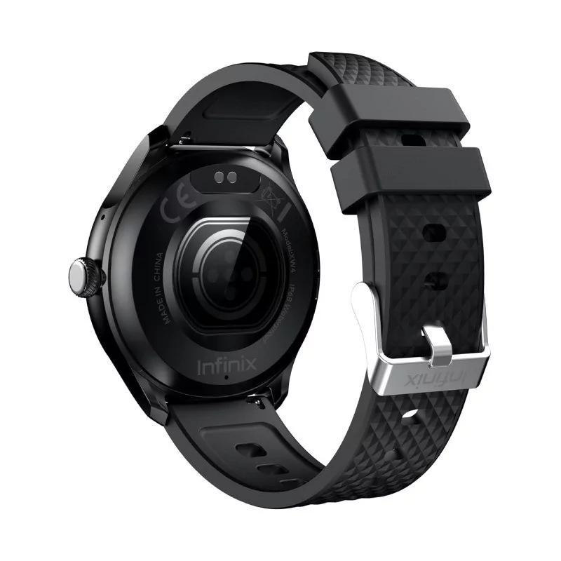 Montre Connectée INFINIX XW4 - Écran: AMOLED 1.39" - Capacité Batterie: 300 mAh - Méthode de chargement: Charge magnétique - Compatibilité: Android, ou iOS - Connectivité: Bluetooth 5.3 - Durée d'utilisation typique: Jusqu'à 12 jours - Temps de charge court et temps de veille long - Étanchéité: IP68 - Fonctionnalités: Notification de synchronisation intelligente | Appel Bluetooth | Vérifier le rythme cardiaque et le taux d’oxygène - Couleur: Noir - Garantie: 1 an