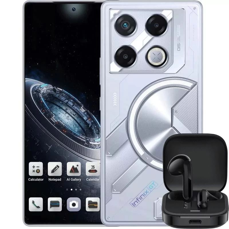 Smartphone Infinix GT 20 Pro - Ecran : Écran en verre incurvé 2.5D 6.78" AMOLED FHD+ (1080x2460pixels) LTPS - Processeur : Mediatek Dimensity 8200 Ultimate Octa-core Mali-G610 - Système d’exploitation : XOS 14.5 Powered by Android 14 - Mémoire : 12 Go - Stockage : 256Go - Appareil photo arrière : 108MP-OIS + 2MP + 2MP - Avant : 32MP - Capacité de Batterie : 5000 mAh - Charge rapide de 45W - Connectivité: WiFi, Bluetooth - NFC - 5G - Capteurs : Capteur De Lumiére , Gyroscope, Capteur de Proximité - Empreinte Digital - Double sim - Couleur : SILVER- Garantie : 1 an